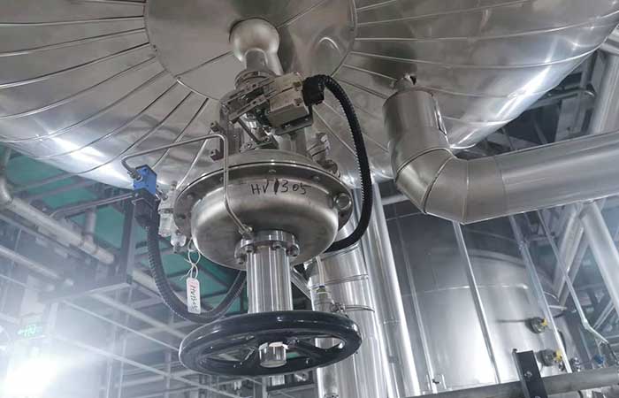 La válvula de fondo neumática se utiliza para descargar materiales de recipientes de reacción en industrias limpias como la farmacéutica, la biotecnología, la química fina y la alimentaria. La válvula tiene ventajas como la ausencia de zonas muertas, residuos, fugas y un excelente rendimiento de sellado. Cuando se usa con un agitador, los materiales del fondo se pueden mezclar completamente con agua durante la agitación, lo que garantiza una distribución uniforme. La válvula adopta un ángulo de instalación de 35 grados, lo que proporciona una función de autolimpieza para la descarga de material y hace que el mantenimiento del equipo sea más conveniente. La superficie interior de la válvula está pulida a espejo con una rugosidad de 0,2 a 0,45 μm, lo que la hace más limpia para su uso.